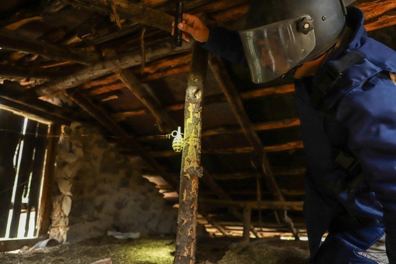Bildirilib ki, evin damında sütuna və damın giriş qapısına tələ məftili vasitəsilə quraşdırılmış döyüş vəziyyətinə gətirilən iki ədəd F-1 əl qumbaraları aşkarlanıb.