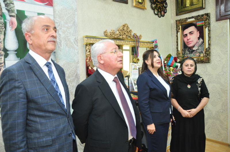 Daha sonra millət vəkili şəhid Həsən Həsənov və Elman Çıraqovun ailələrini ziyarət edərək, onların qayğıları ilə maraqlanıb.