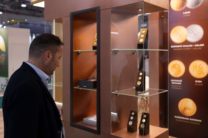 Tədbir çərçivəsində “AzerGold” QSC-nin təqdim etdiyi qızıl və gümüş sikkələr, eləcə də qızıl külçələr yerli və xarici sərgi ziyarətçilərin diqqət mərkəzində olub.