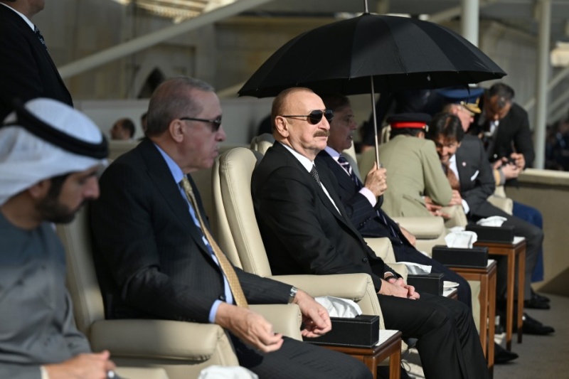 aia.az xəbər verir ki, Azərbaycan Respublikasının Prezidenti İlham Əliyev, birinci xanım Mehriban Əliyeva, Türkiyə Respublikasının Prezidenti Rəcəb Tayyib Ərdoğan, Pakistan İslam Respublikasının Baş naziri Məhəmməd Şahbaz Şərif paradda iştirak ediblər.
