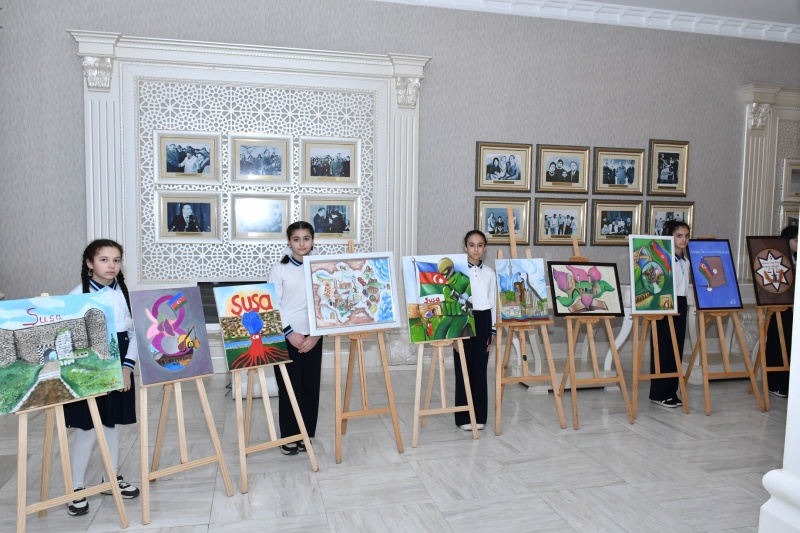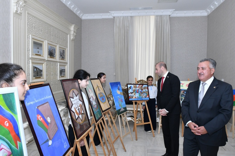 Sonra Heydər Əliyev Mərkəzinin foyesində rəsmlərdən ibarət təşkil olunan sərgiyə baxış keçirilib.
