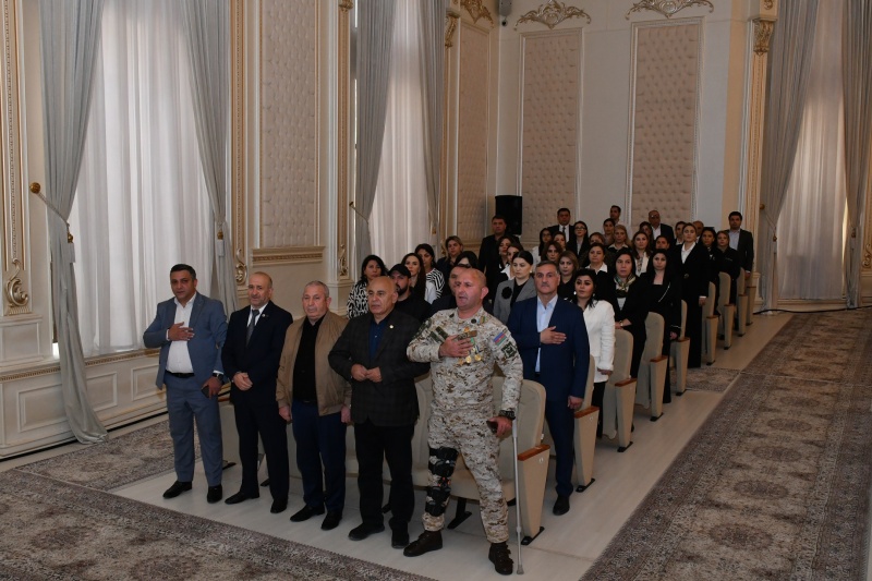 Tədbirdə Ümummilli Lider Heydər Əliyevin və vətənimizin azadlığı uğrunda canını fəda etmiş şəhidlərin xatirəsi 1 dəqiqəlik sükutla anılıb, Dövlət Himni oxunub.