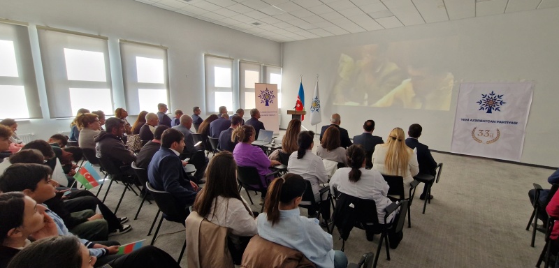 Çıxış edənlər natiqlər bu əlamətdar gün münasibəti ilə tədbir iştirakçılarını təbrik edərək bildiriblər ki, Azərbaycanın ən mütəşəkkil və qüdrətli siyasi qüvvəsi olan Yeni Azərbaycan Partiyasının ölkəmizin müstəqillik və dövlətçilik tarixində müstəsna rolu olub. Vurğulanıb ki, dövlətimizin xaos və anarxiyadan, tənəzzüldən və məhv olmaq təhlükəsindən xilas edilməsində mühüm rol oynayan Yeni Azərbaycan Partiyası Ümummilli Lider Heydər Əliyevin və Prezident İlham Əliyevin rəhbərliyi ilə milli birlik, vətəndaş həmrəyliyi, sabitlik və tərəqqinin təmin olunmasına mühüm töhfələr verib.