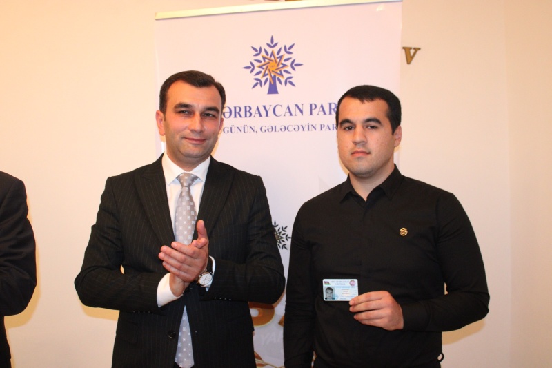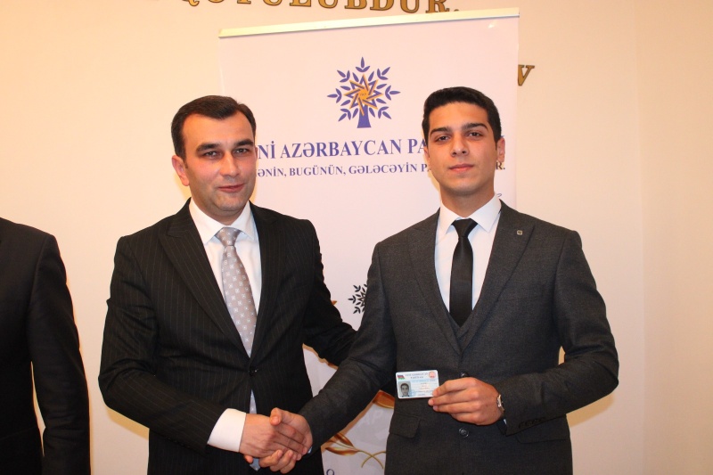Sonda Yeni Azərbaycan Partiyasının yeni üzvlərinə partiya vəsiqələri təqdim olundu və partiyanın Himni səsləndirildi.