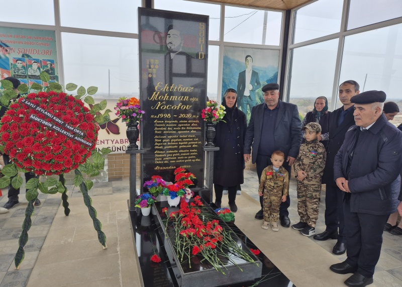 Mərasim iştirakçıları torpaqlarımızın işğaldan azad edilməsi uğrunda gedən döyüşlərdə qəhrəmancasına vuruşaraq şəhidlik zirvəsinə ucalan Nəcəfov Etibar Mehman oğlunun məzarını ziyarət etmiş, onun əziz xatirəsini dərin ehtiramla yad etmişlər.