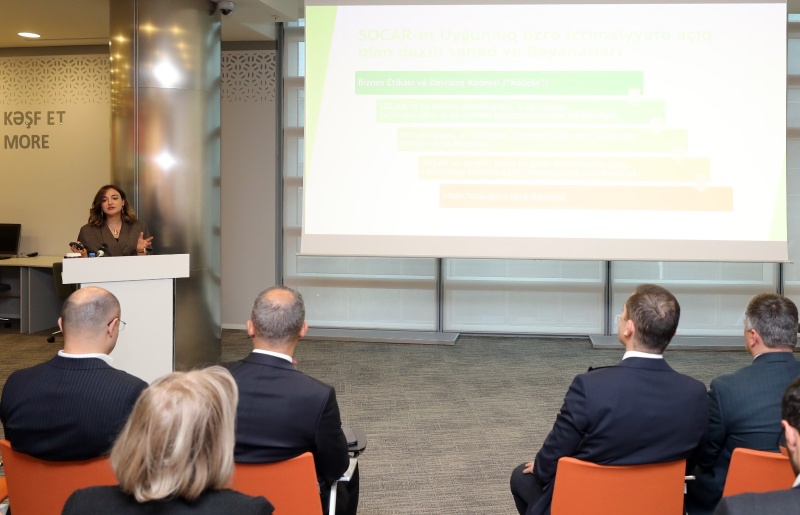 Tədbirdə, həmçinin SOCAR-ın Uyğunluq Departamentinin Biznes etikası və antikorrupsiya şöbəsinin böyük hüquq məsləhətçisi Lalə Babayeva SOCAR-da daxili nəzarət mexanizmləri, o cümlədən pozuntular haqqında məlumatlandırma kanalları və işçilərin bu sahədə maarifləndirilməsi üçün keçirilən təlimlərlə bağlı təqdimatla çıxış edib.