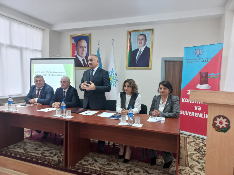 Yeni Azərbaycan Partiyası (YAP) Qusar rayon təşkilatı “Konstitusiya və Suverenlik İli” çərçivəsində “Heydər Əliyevin siyasi irsini öyrənirik” məktəbinin “Milli mənəvi dəyərlərin qorunması: Heydər Əliyev irsində gəncliyin yeri” mövzusunda növbəti məşğələsi keçirilib.