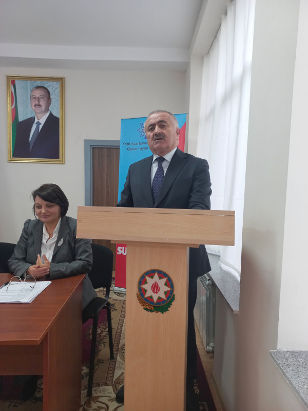 Tədbirdə partiya veteranı Qorxmaz Muradov, Gigiyena və epidemiologiya mərkəzi işçiləri ərazi partiya təşkilatının sədri Nadirşah Şirinov, Qusar Peşə liseyinin direktoru Xatirə Nağıbəyova, Qusar Peşə liseyinin karyera xidməti üzrə mütəxəssisi Firəngiz Qazıyeva, məktəbli Rasim Dəmirov çıxış ediblər. Çıxışlarda milli-mənəvi dəyərlərimizin öyrənilməsi, qorunması və gənc nəslə çatdırılmasının böyük əhəmiyyət kəsb etdiyi bildirilib.