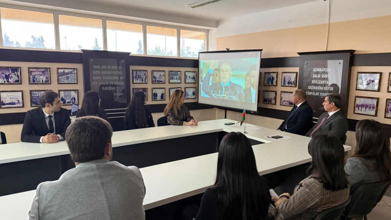 aia.az xəbər verir ki, tədbir Azərbaycan Respublikasının Dövlət Himni səsləndirilməsi ilə başlayıb. Daha sonra tədbir iştirakçıları Ümummilli Lider Heydər Əliyevin, Azərbaycanın müstəqilliyi və suverenliyi uğrunda canından keçmiş şəhidlərin xatirəsini bir dəqiqəlik sükutla yad etdilər. Ardınca Ümummilli Liderin mənalı ömür yolunu və müdrik siyasi fəaliyyətini əks etdirən videoçarx nümayiş etdirilib.