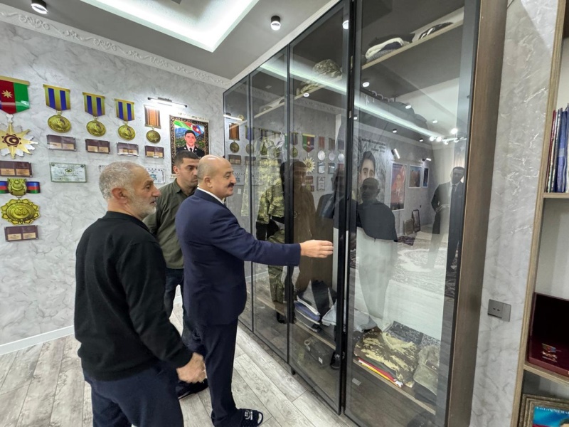 Daha sonra Vətən müharibəsi qəhrəmanı, şəhid kapitan İsmayıl Səmədovun yeni açılmış ev muzeyi ziyarət olunub. Muzeydə şəhidin Vətənə şərəfli xidmət yolunu əks etdirən fotolar və xatirə materialları ilə tanış olunub, qəhrəmanımızın əziz xatirəsi dərin ehtiramla yad edilib.