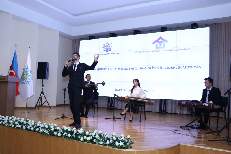 Dekabrın 22-də “Konstitusiya və Suverenlik İli” çərçivəsində Yeni Azərbaycan Partiyası (YAP) və Azərbaycan Memarlıq və İnşaat Universitetinin birgə təşkilatçılığı ilə “Zəfərdən quruculuğa: Prezident İlham Əliyevin liderlik missiyası” adlı tədbir keçirilib.