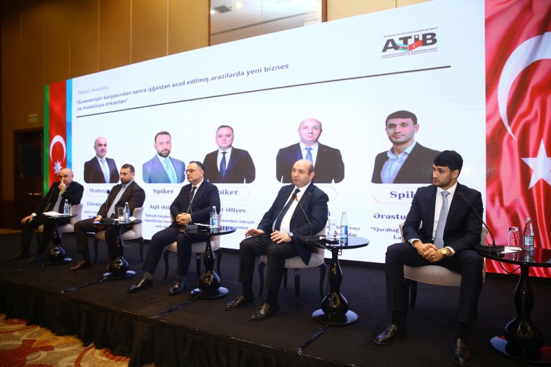 Kiçik və Orta Biznesin İnkişafı Agentliyinin nümayəndəsi Eldəniz Əmirovun moderatorluq etdiyi “Suverenliyin bərpasından sonra işğaldan azad edilmiş ərazilərdə yeni biznes və investisiya imkanları” adlı ilk paneldə İqtisadi Zonaların İnkişafı Agentliyinin İdarə Heyətinin sədr müavini Aqil Əzizov, ATİB üzvləri Azərbaycan Biznesinin İnkişafı Fondunun nümayəndəsi Rüfət Əliyev, Veysəloğlu Şirkətlər Qrupunun Baş icraçı direktorunun Korporativ funksiyalar üzrə müavini İlqar Nuri və “Qarabağ Aqro 44” MMC-in Layihə rəhbəri Ərəstun Qarayevi çıxış ediblər.