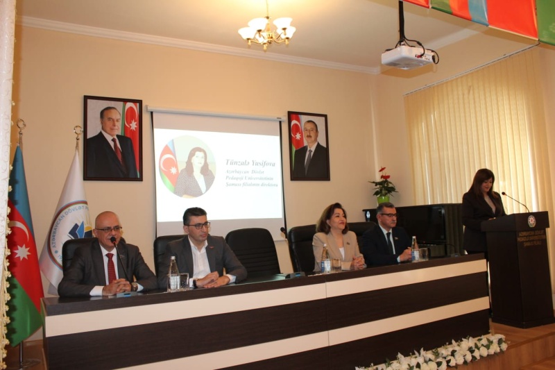 Tədbirin rəsmi hissəsi filialın akt zalında davam etdirildi. Filialın direktoru, dosent Tünzalə Yusifova qonaqları salamlayaraq çıxış etdi. O, Ulu Öndər Heydər Əliyevin “Bizim xalqımızın gələcəyi gənclərdir!” fikrinin ölkədə həyata keçirilən gənclər siyasətinin ideoloji əsasını təşkil etdiyini vurğuladı. Bildirdi ki, əsası Heydər Əliyev tərəfindən qoyulan və bu gün İlham Əliyev tərəfindən uğurla davam etdirilən siyasət nəticəsində milli dəyərlərə sadiq, müasir dünyagörüşlü və rəqabətqabiliyyətli gənclik formalaşıb. Direktor qeyd etdi ki, insan kapitalının inkişafı gənclərin təhsili ilə birbaşa bağlıdır və bu sahəyə yatırılan sərmayə ölkənin davamlı inkişafına xidmət edir. Bu baxımdan ADPU-nun Şamaxı filialı gənclərin keyfiyyətli təhsil alması və intellektual potensialının gücləndirilməsi istiqamətində mühüm rol oynayır.