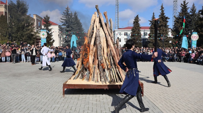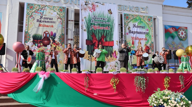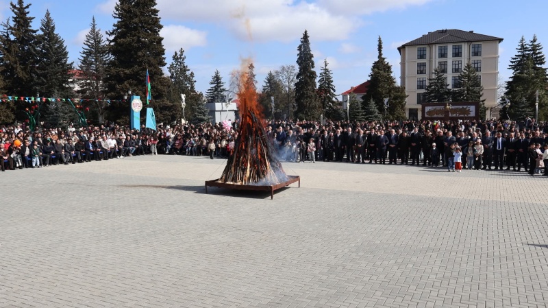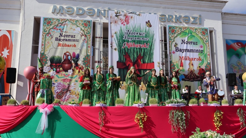 Bayram münasibətilə şəhərin al-əlvan bəzədilmiş mərkəzi meydanında təşkil edilmiş sərgidə sənətkarların əl işləri, dekorativ-tətbiqi sənət nümunələri, rəsm əsərləri, milli geyimlər, eyni zamanda Novruz süfrəsinə xas olan şirniyyatlar və milli mətbəximizə aid digər təamlar nümayiş edilmişdir. Novruz bayramının əsas rəmzlərindən biri olan bayram tonqalı alovlandırılmış, Novruzun rəsmi personajı olan Bahar qızı meydana daxil olaraq tədbir iştirakçılarını, bütün rayon sakinlərini və qonaqları bayram münasibətilə təbrik etmiş, onlara xoş arzularını çatdırmışdır. Kosa, keçəl, kəndirbazlar və sim pəhləvanlarının maraqlı çıxışları iştirakçılarda bayram sevincini daha da artırmışdır.