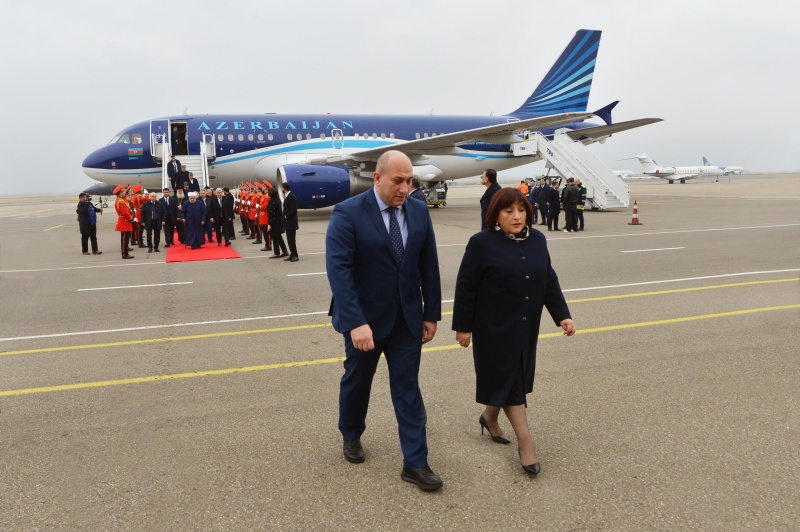 Şota Rustaveli adına Tbilisi beynəlxalq hava limanında spiker Sahibə Qafarovanı və nümayəndə heyətini Azərbaycanın Gürcüstandakı fövqəladə və səlahiyyətli səfiri Faiq Quliyev və digər rəsmi şəxslər qarşılayıblar.