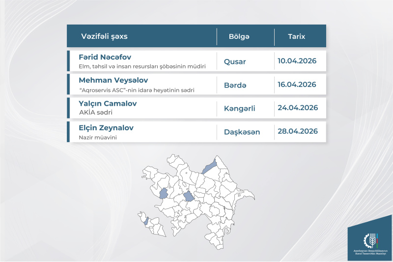 Kənd Təsərrüfatı Nazirliyinin vəzifəli şəxslərinin aprel ayında bölgələrdə keçirəcəyi vətəndaş qəbullarının qrafiki təsdiqlənib