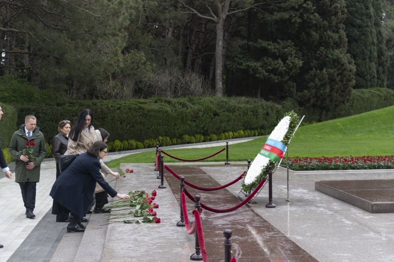 aia.az xəbər verir ki, Nümayəndə heyəti həmçinin Şəhidlər Xiyabanında Azərbaycanın suverenliyi və ərazi bütövlüyü uğrunda canlarından keçmiş qəhrəman Vətən övladlarının xatirəsini yad edib, məzarları önünə güllər düzüblər.