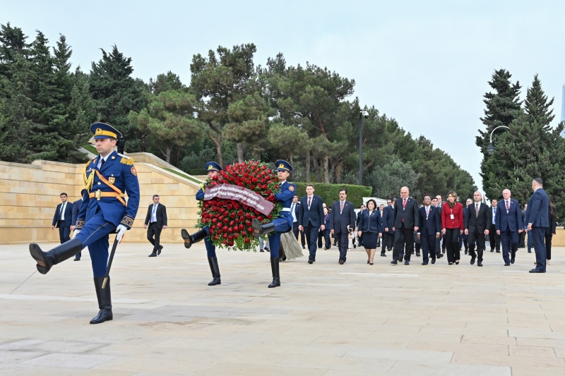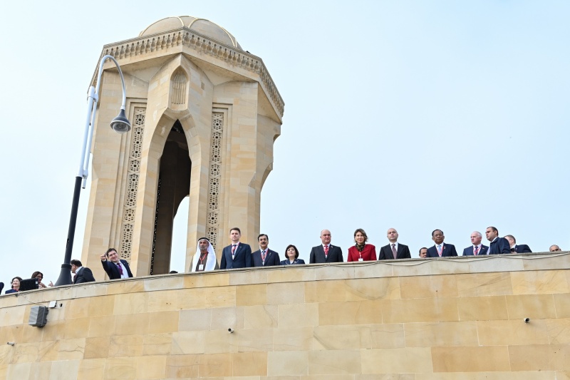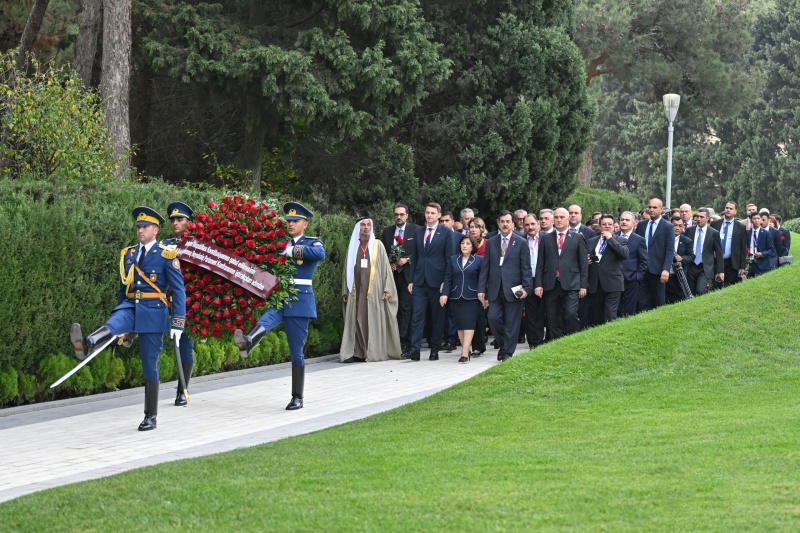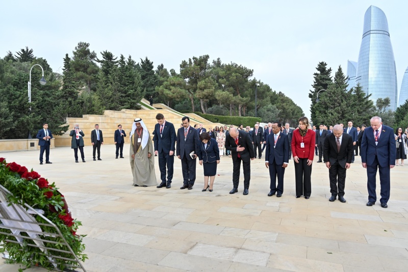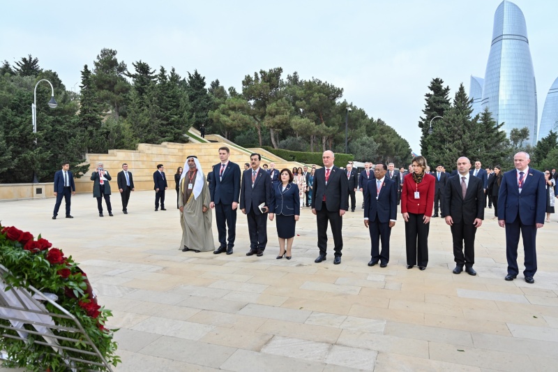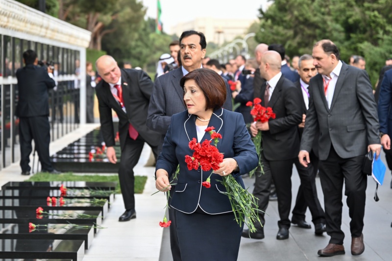 Milli Məclisinin sədri Sahibə Qafarova, Pakistan İslam Respublikası Senatının sədri Syed Yusuf Raza Gilani, Tacikistan Respublikası Ali Məclisi Nümayəndələr Palatasının sədri Fayzali İdizoda, Rumıniya Parlamenti Senatının sədri Mirça Abrudean, eləcə də digər ölkələrin parlament nümayəndə heyətlərinin rəhbərləri və üzvləri, beynəlxalq təşkilatların təmsilçiləri əvvəlcə Fəxri xiyabana gələrək xalqımızın Ümummilli Lideri, müasir müstəqil Azərbaycan dövlətinin memarı və qurucusu Heydər Əliyevin xatirəsini dərin ehtiramla yad edib, məzarı önünə əklil qoyub.