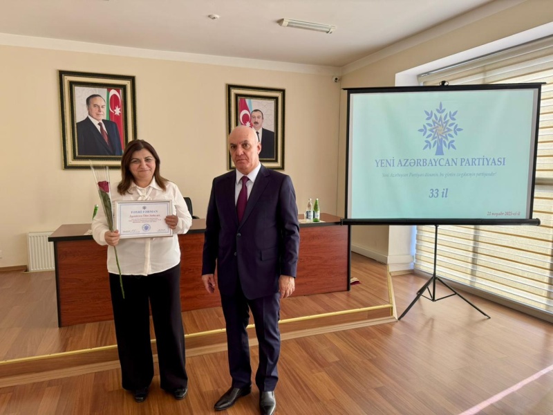 Sonda Yeni Azərbaycan Partiyasının yaradılmasının 33-cü ildönümü münasibətilə partiyanın ictimai-siyasi həyatında fəal iştirak edən üzvlərə fəxri fərman təqdim edilib.