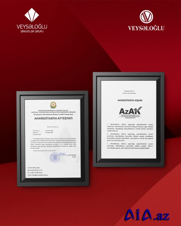 Veysəloğlu Şirkətlər Qrupuna daxil olan "Veysəloğlu" MMC-nin Mərkəzi Sınaq Laboratoriyası Azərbaycan Akkreditasiya Mərkəzi (AZAK) tərəfindən ISO/IEC 17025:2020 beynəlxalq standartı üzrə akkreditasiyadan uğurla keçib. Bu mühüm nailiyyət "Veysəloğlu"nun tarixində yalnız texniki addım deyil, həm də elmə, keyfiyyətə və insan sağlamlığına olan sadiqliyin rəsmi təsdiqidir.